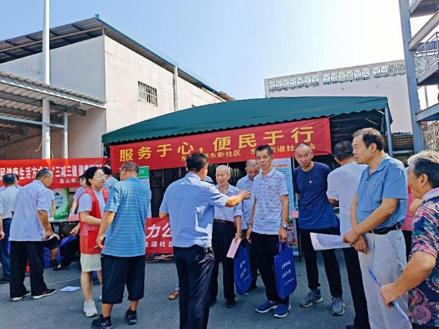 为响应“中华慈善日”号召——汇聚慈善力量,助力乡村振兴,让更多人享受到便捷的服务与社会的关爱,使更多人了解慈善、参与慈善,将爱心和温暖传递给更多人。2023年9月8日上午,东新社区联合东山社工站、派出所、卫生院、东山幼儿园的党员志愿者们在东新社区开展“服务于心,便民于行”便民服务活动。