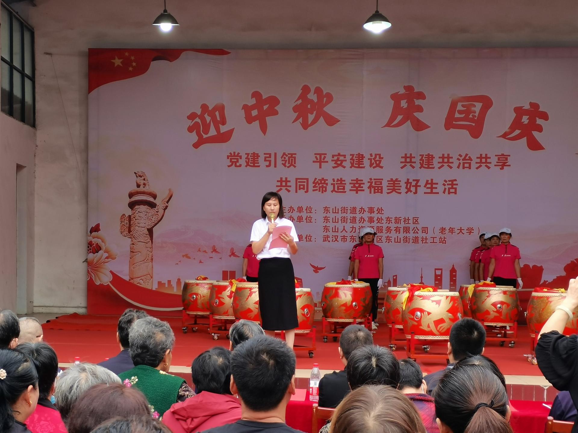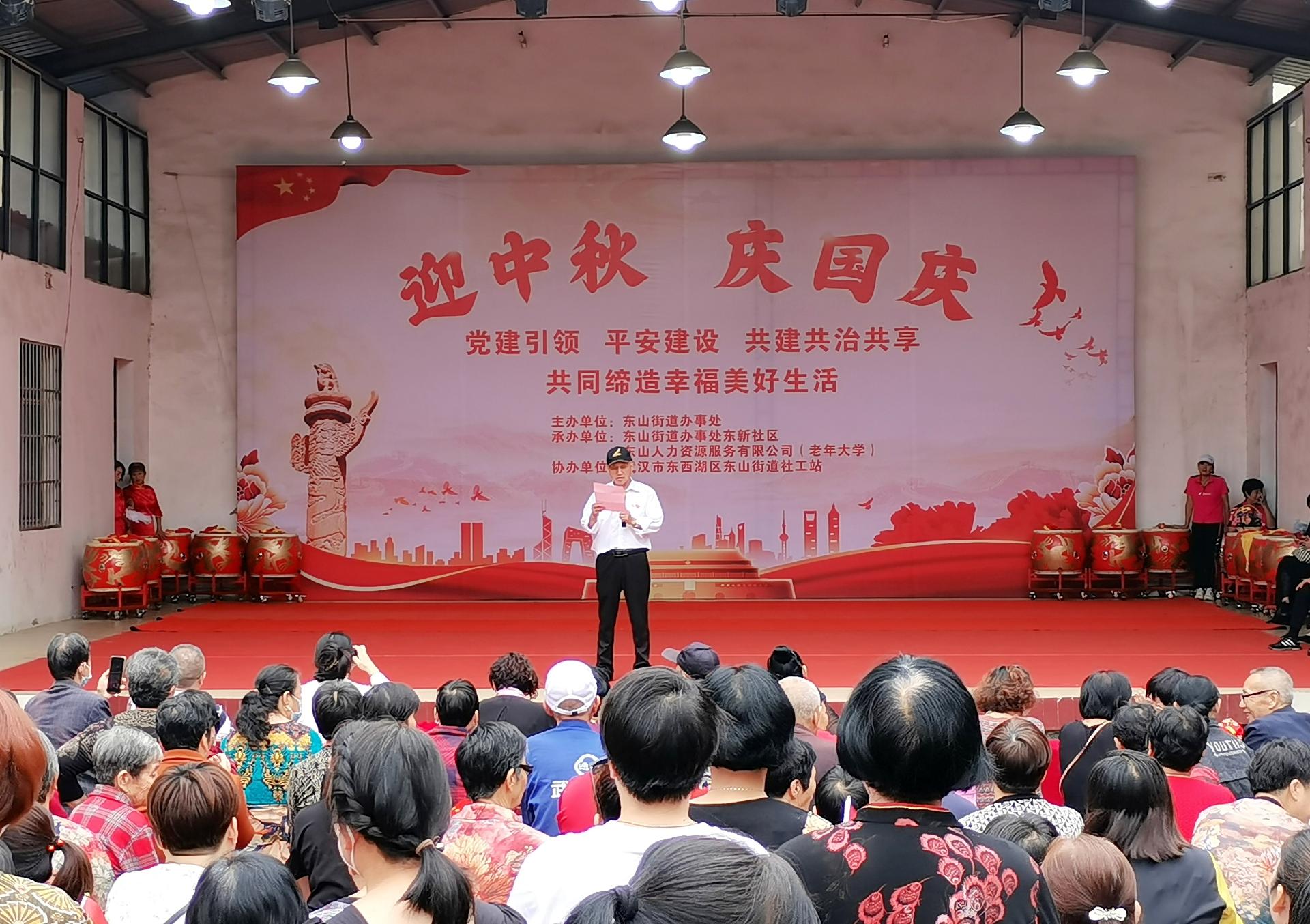 秋风送爽,丹桂飘香。为喜迎中秋佳节,欢庆祖国74岁华诞,2023年9月28日上午,东山街道“迎中秋、庆国庆”文艺汇演正式拉开帷幕。本次活动由东山街道办事处主办,东新社区、东山人力资源服务有限公司承办,东山街道社工站协办。