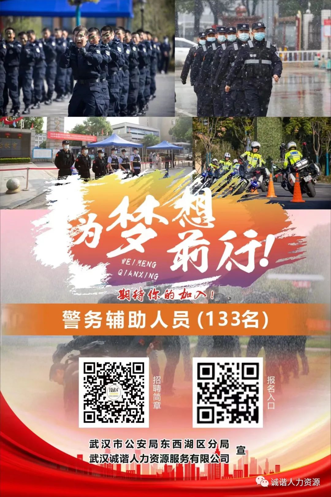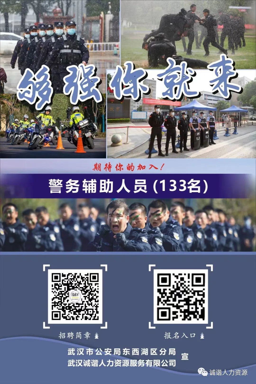 为加强我区基层警务辅助力量,结合我区工作实际,东西湖区公安分局拟公开招聘一批警务辅助人员以缓解日益增长的警力需求。本次招聘工作由东西湖区公安分局委托第三方机构(武汉诚谐人力资源服务有限公司)组织实施。